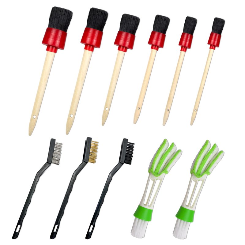 - Clean Wheels, Interior, Exterior: Our 11-piece car detailing set is perfect for keeping your car looking as good as new! Reach tight spaces and difficult-to-reach areas with the 6 boar hair brushes. The 3 wire brushes are perfect for scrubbing away rust and grime on metal parts