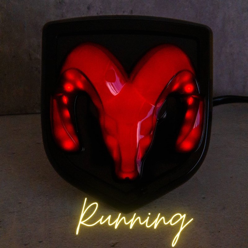 Provides low Illumination with the tail lights on and high illumination when the brakes are applied. The black metallic coating appears transparent when the red LEDs shine through the Ram logo.