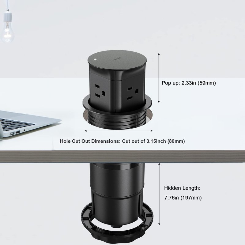 - Countertop Pop up Outlet: Fully automatic retractable desktop design,this unique grommet power outlet get rid of hefty adapters and messy plugs.
