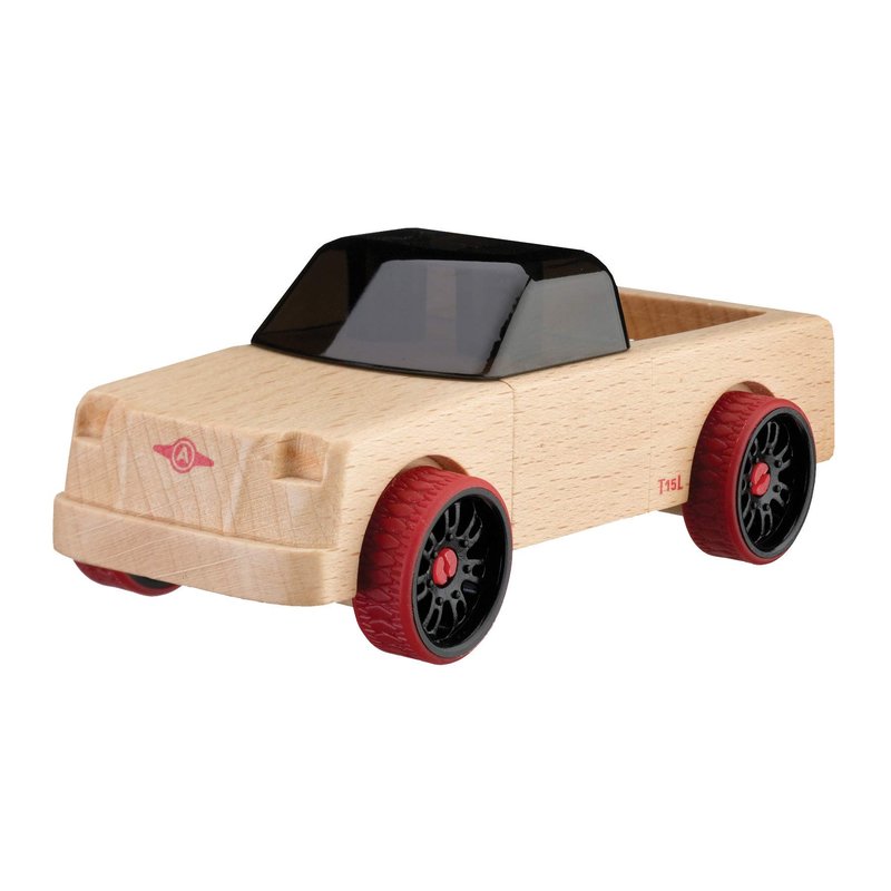 Automoblox Collectible Wood Toy Cars and Trucks—Mini T15L Grizzly Pickup (Compatible with other Mini and Micro Series Vehicles), Red, 4.75" x 1.75"