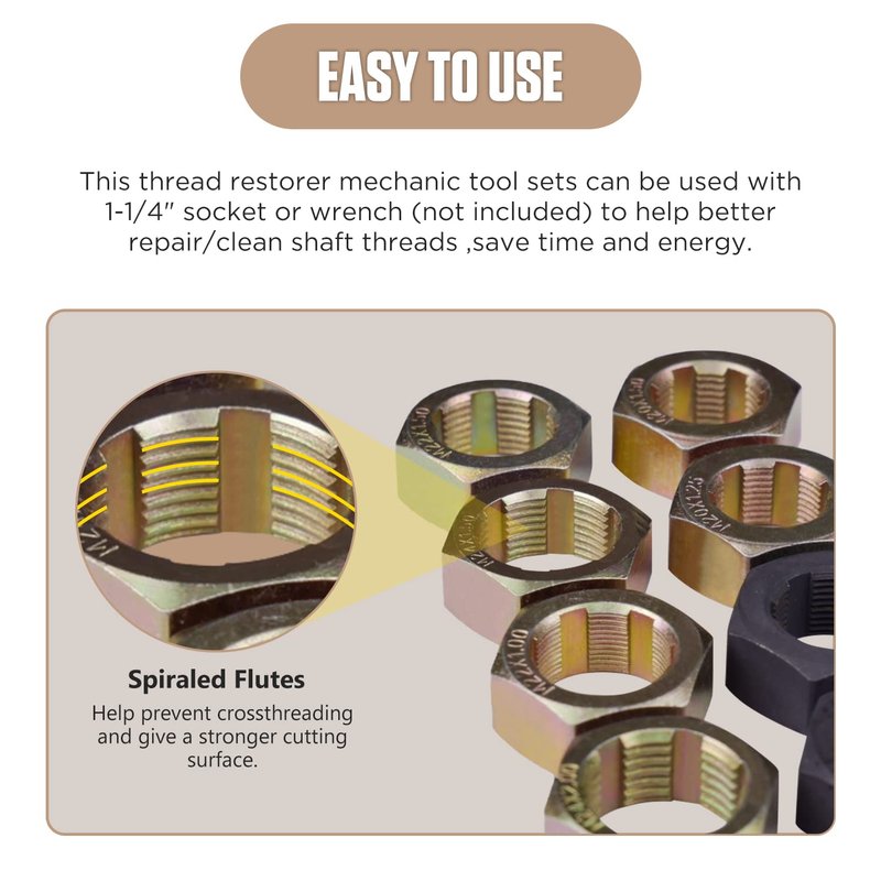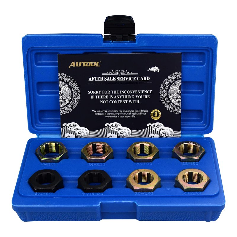 - 【Widely Compatible】Thread repair tools are suitable for a variety of thread specifications, Sizes included M20 x 1.25, M20 x 1.50, M22 x 1.00, M22 x 1.50, M24 x 1.50, M24 x 2.00, 13/16 Inches x 20 UNF, 3/4 Inches x 20 UNF. Use with 1-1/4" socket or wrench. (package does not contain 1-1/4" socket or wrench. )