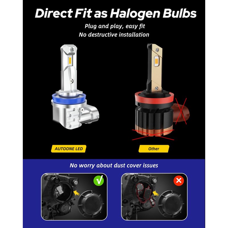- 【350% Brighter Than Halogen】-AUTOONE H11 fog lights are equipped with CSP LED chips, which provide 10000 LM/Set light output and 6000K cool white light making your vision range wider and farther