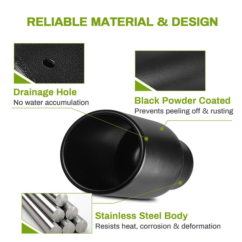 - Anti-deformation & rustproof: Built from high-grade stainless steel, our exhaust tips effectively resist heat, rust and deformation to protect & decorate your tailpipe system well; plus, a drainage hole helps drain water to prevent rust