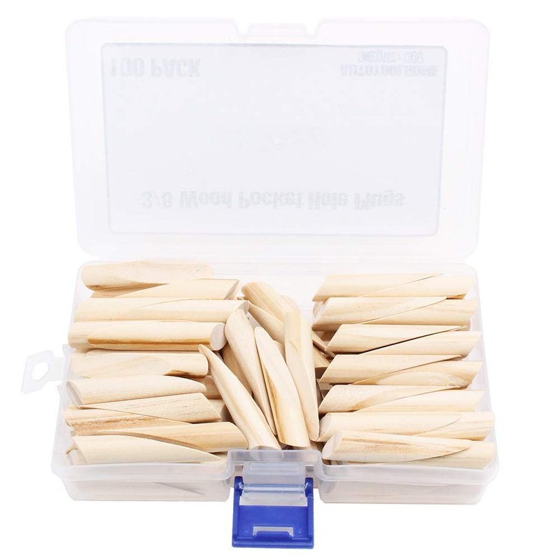 AUTOTOOLHOME 100 Pack Solid Wood Pocket Hole Plugs Pine for Pocket Hole Jig Woodworking Tool with a Storage Case(100)