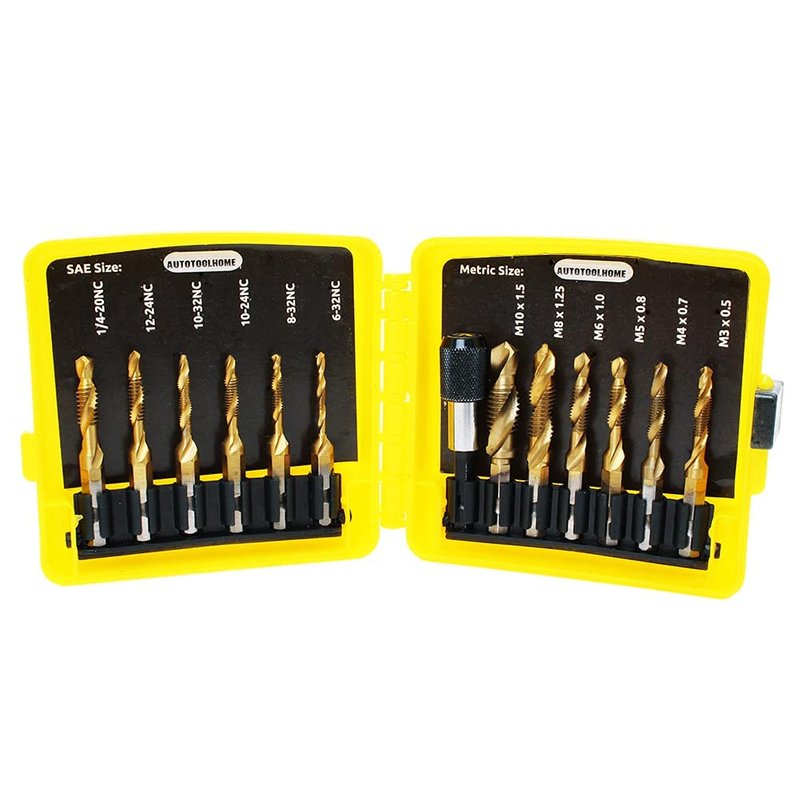 AUTOTOOLHOME Titanium Combination Drill Tap Bit Set 13PCS SAE and Metric Tap Bits Kit for Screw Thread Drilling Tapping Deburring Countersinking