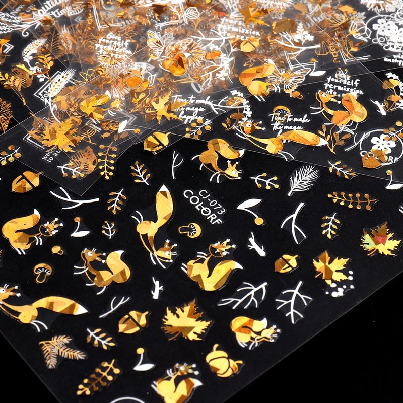 - 【Fall Nail Stickers】Double color bronzing fall nail stickers with maple leaves, squirrel, wheat, butterfly, acorn, ginkgo leaves, letters, geometric pattern design, you can change the pattern and design your own nails at any time.
