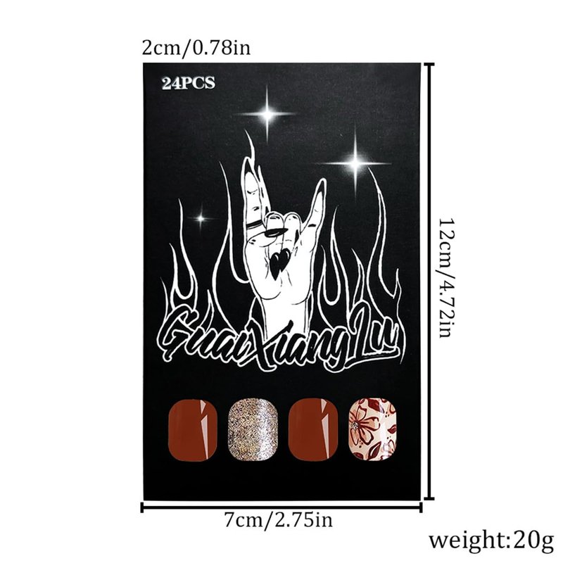 24Pcs Fall Fake Nails with Designs