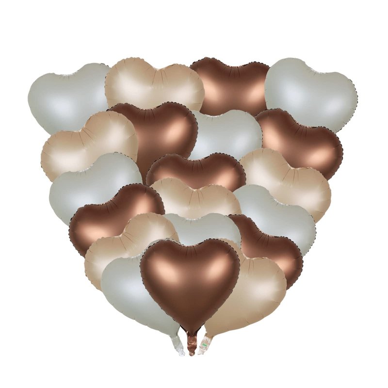 18 Inch 18 pcs White Sand Nude Brown Heart Foil Balloons Caramel Balloons for Birthday Baby Shower Wedding Ceremony Anniversary Decorations