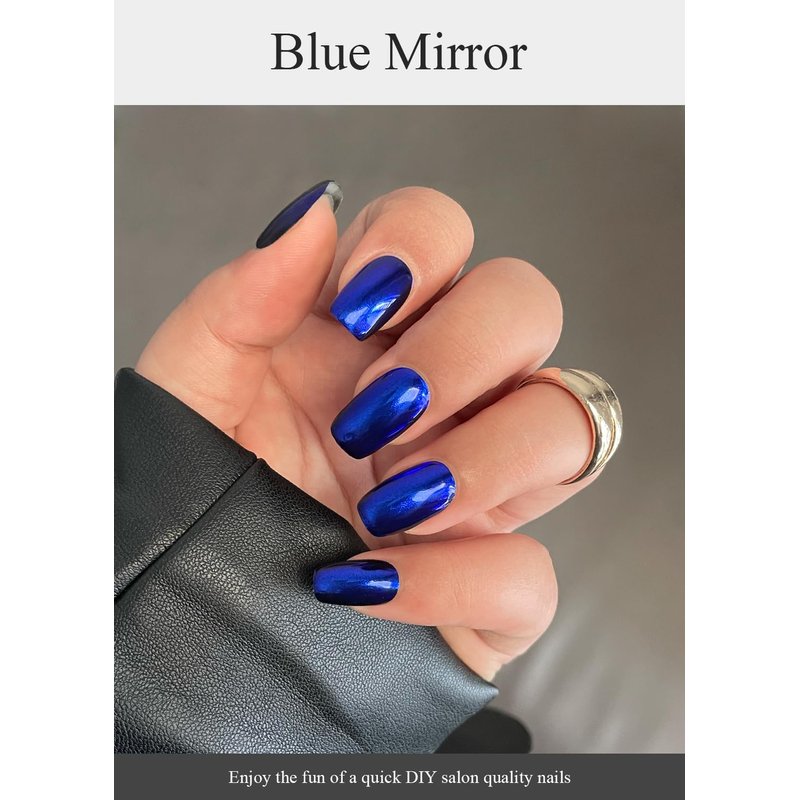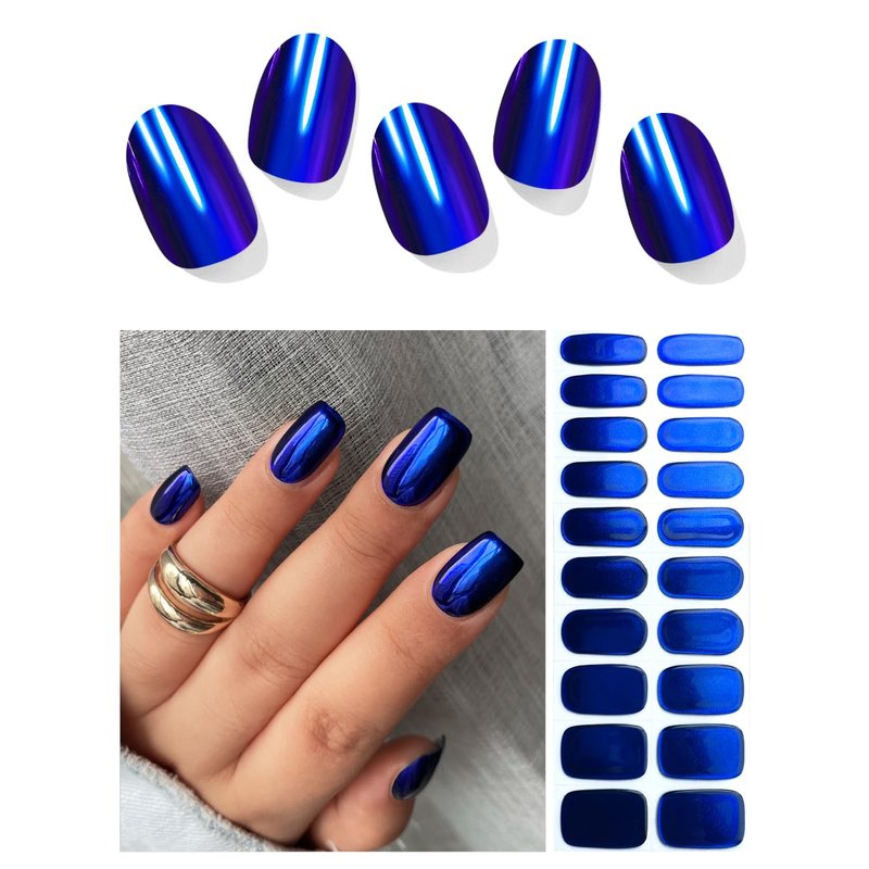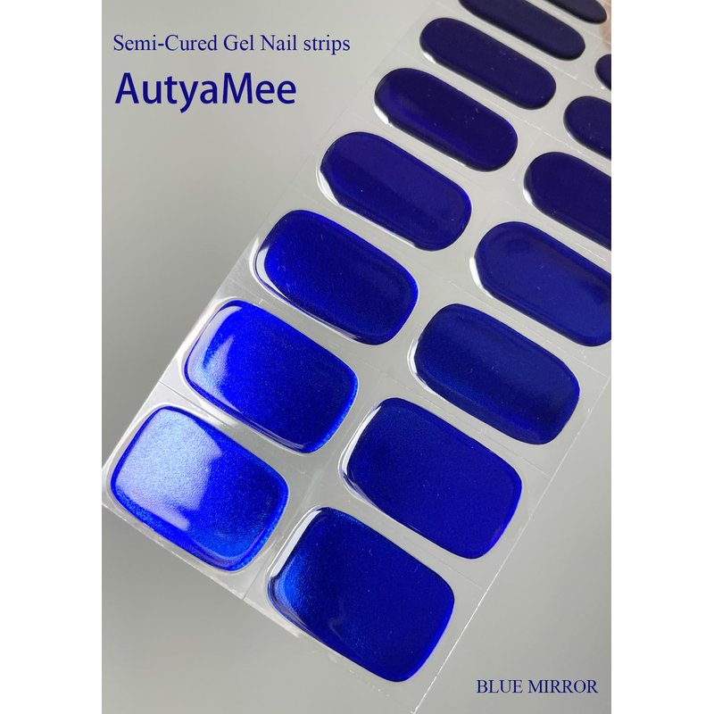 AutyaMee Semi Cured Gel Nail Strips (Blue Mirror)-20 PCS Gel Nail Stickers | Gel Nail Wraps | UV Light Required, Salon Quality & Easy to Use