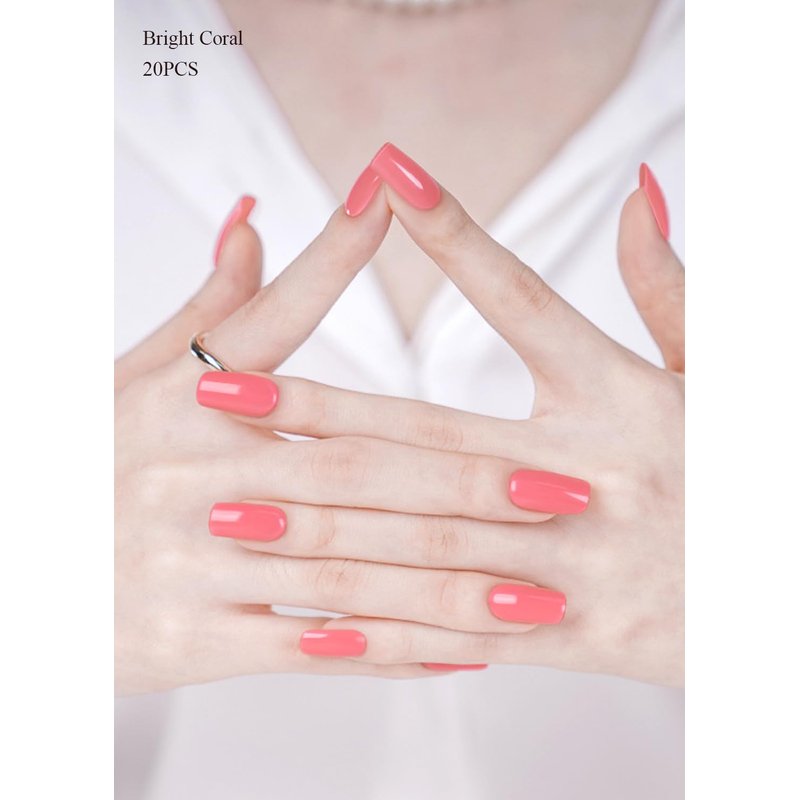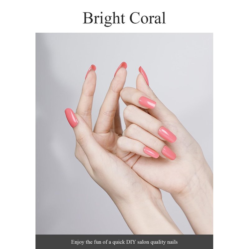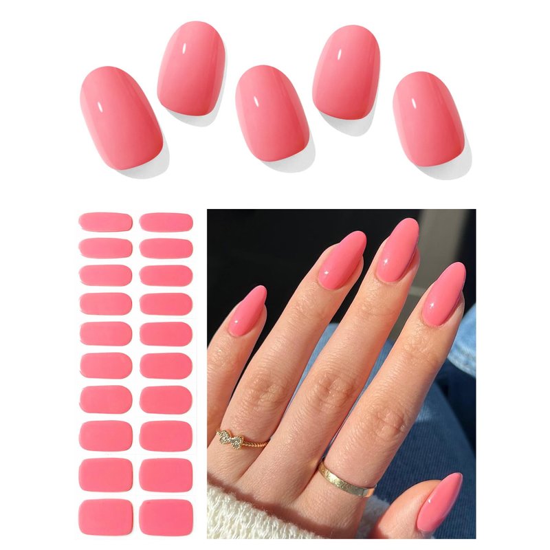 AutyaMee Semi Cured Gel Nail Strips (Bright Coral)-20 PCS Pink Summer Gel Nail Stickers | UV Light Required | Gel Nail Wraps, Salon Quality & Easy to Use