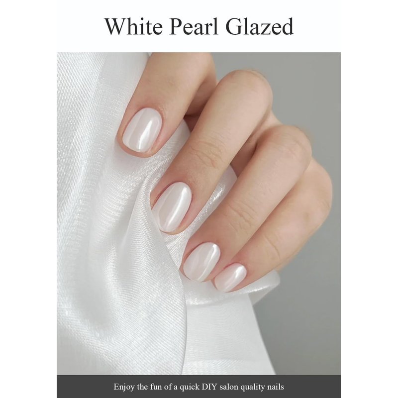 AutyaMee Semi Cured Gel Nail Strips (White Pearl glazed)-20 PCS Chrome Gel Nail Stickers | UV Light Required | Gel Nail Wraps, Salon Quality & Easy To Use