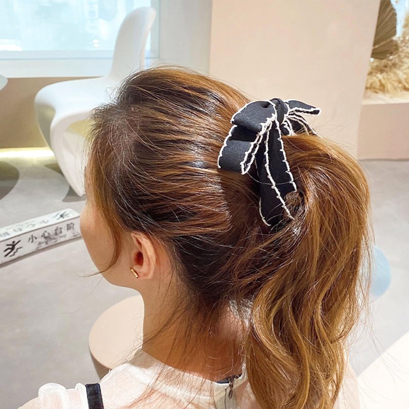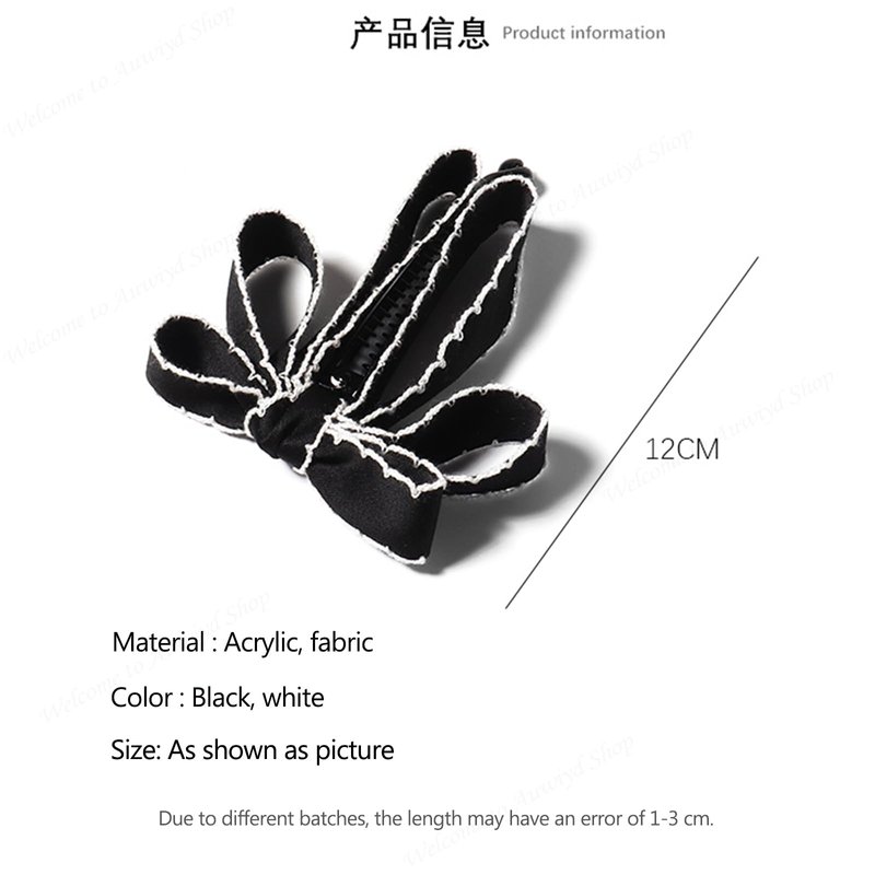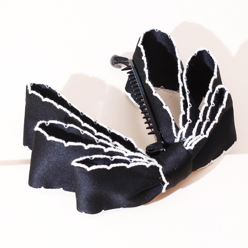 auwiyd Black Ribbon Bow Banana Clip, Korean Style Bowknot Vertical Holder for Women Girls, Sweet Hair Accessories