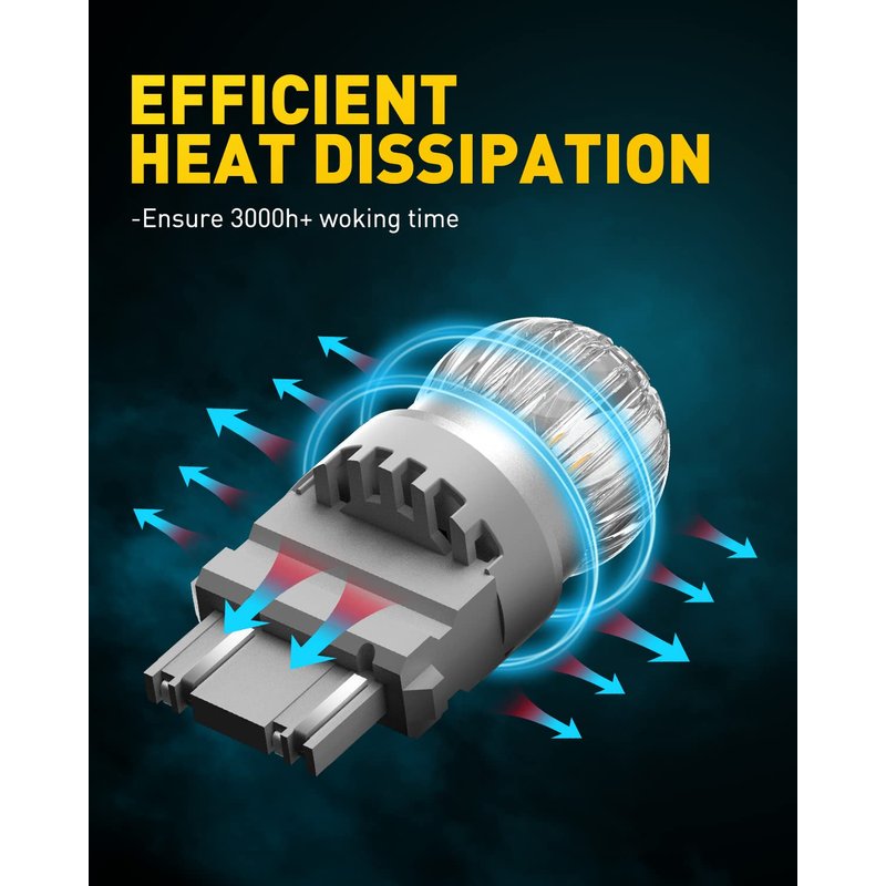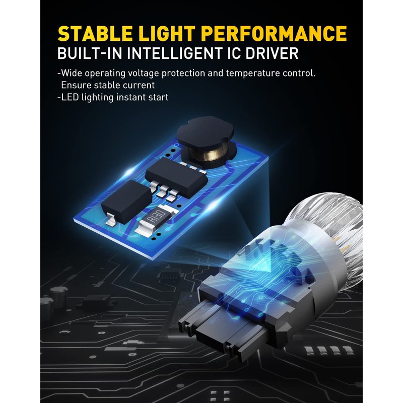 - 【Satble Use & Longer Lifespan】Hidden hollow-carved and aviation grade aluminum body, expediting the heat dissipation of the led amber 3157. With special PC lampshade protecting led chips and components, those 3157 led amber bulbs can work up to 30,000 hours
