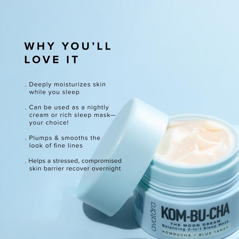 Avatara Kombucha The Moon Dream Night Cream REFILL, Non-Greasy 2-in-1 Night Cream, Deep Moisturization, Kombucha Balances, Vitamin C Brightens Skin, Blue Tansy Soothes Skin, 50 ml, 1.69 fl. Oz.