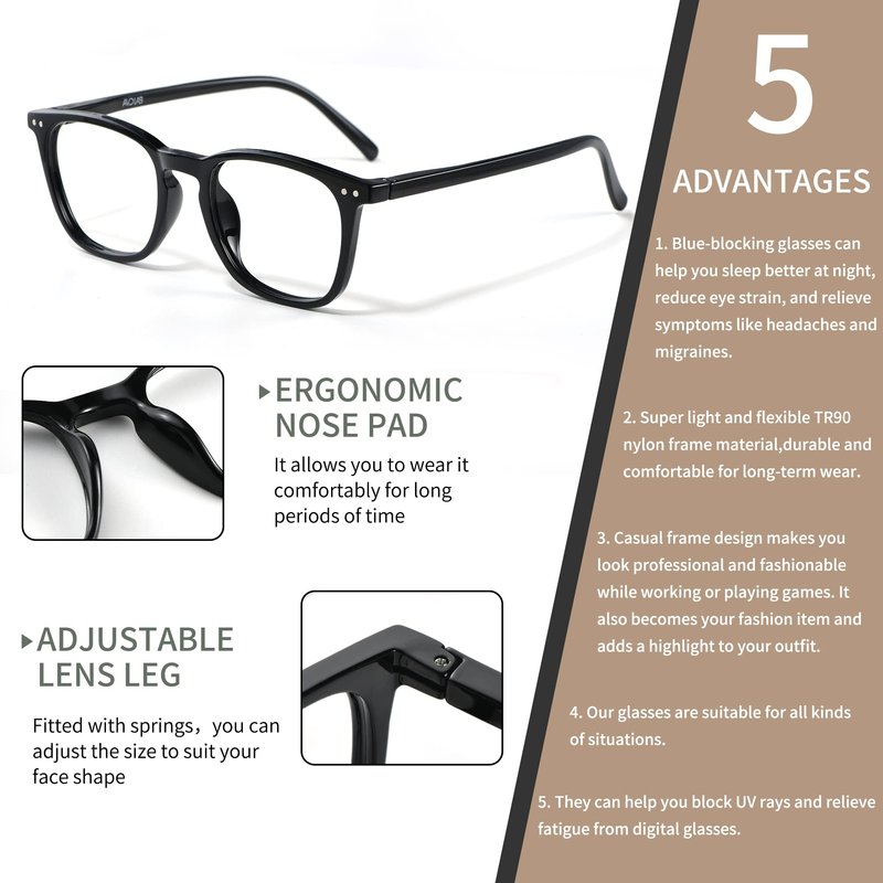 - 【BLUE lIGHT BLOCKING GLASSES】▶ Blue light blocking glasses can help you sleep better at night, reduce eye strain, relieve symptoms like headaches and migraines, thus helping you live a healthier life and perform better in your daily life.