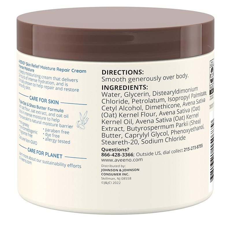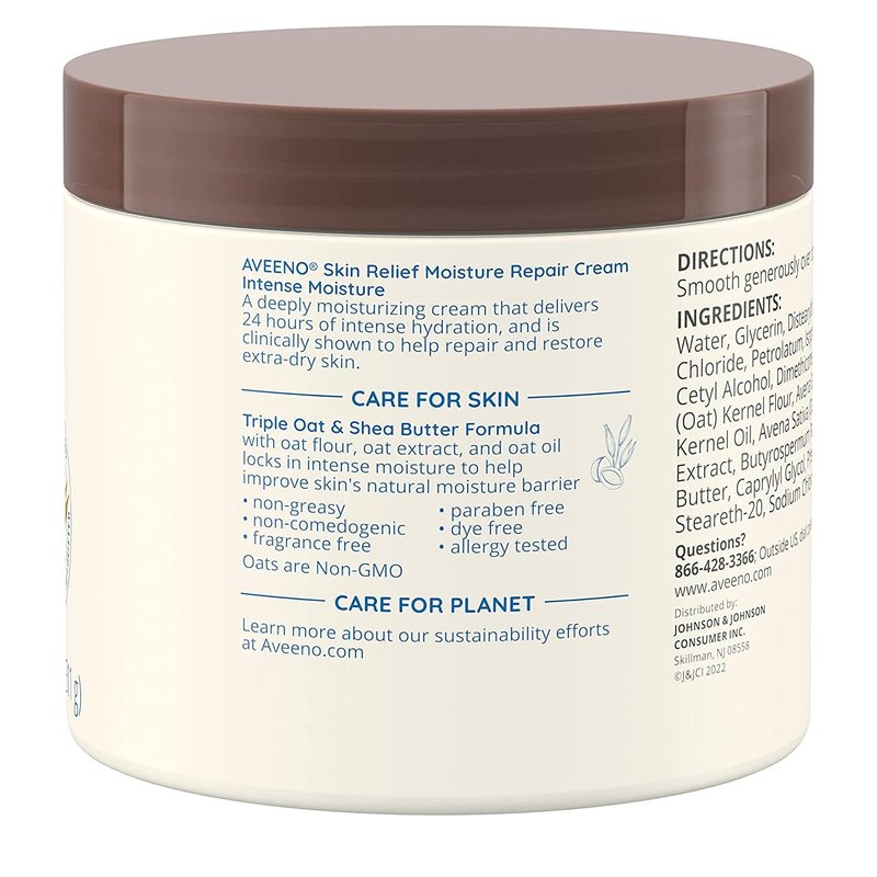 Experience deep, long-lasting hydration with Aveeno Skin Relief Intense Moisture Repair Cream. This advanced formula is specifically designed to provide intense hydration for dry, sensitive skin, leaving it nourished, soft and healthy. Give your skin the nutrition and hydration it deserves, say goodbye to dryness and hello to silky, radiant skin.