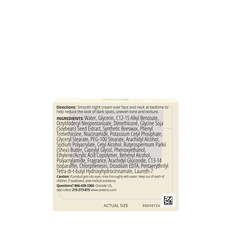 Aveeno Positively Radiant Moisturizing Face & Neck Night Cream with Tone Correcting Soy & Niacinamide, Night Cream Targets Dull Skin & Evens Skin Tone & Texture, Hypoallergenic, 1.7 oz