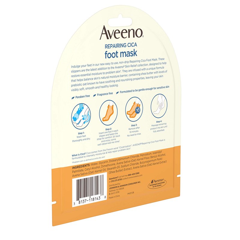 Aveeno Repairing CICA Foot Mask with Prebiotic Oat and Shea Butter, Moisturizing Foot Mask for Extra Dry Skin, 2 Single-Use Slippers 1 ea