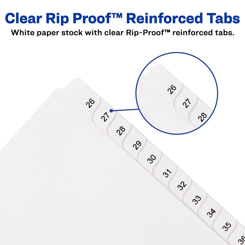 - Each durable tab is designed to withstand everyday wear and tear with clear, Rip Proof reinforcement technology