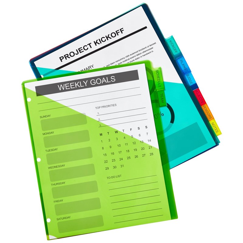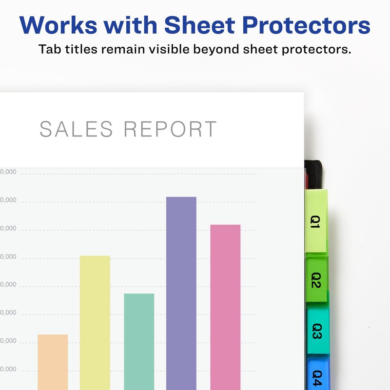 - Tab titles remain visible with tabs that extend beyond sheet protectors