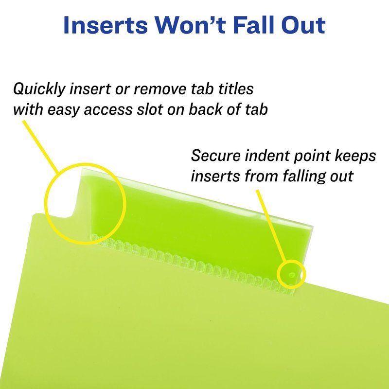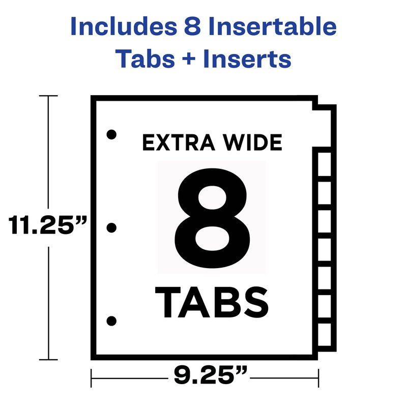- Display 50% more information with the wider Big Tab insertable tab design than with standard insertable divider tabs