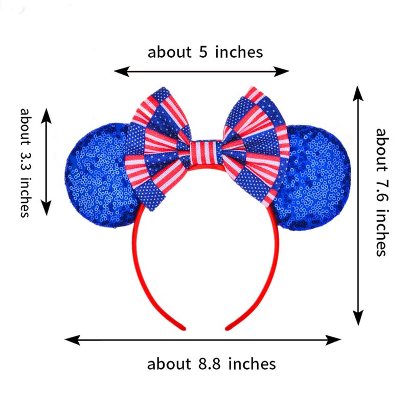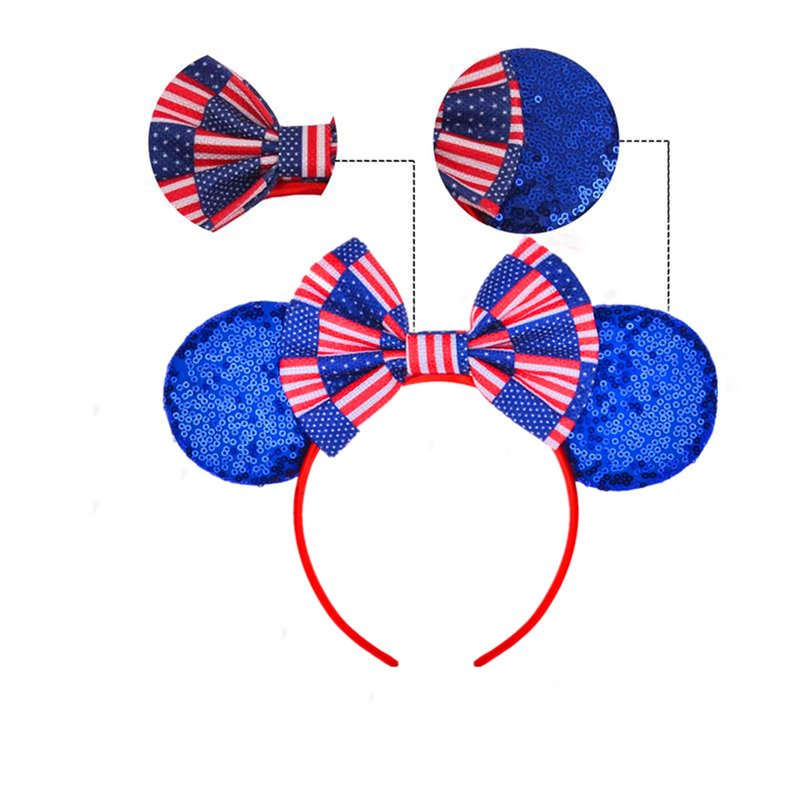 - This cute headband features Minnie Mouse's ears, American flag bow, and beautiful sequins crafted together to create a stunning hair accesory.