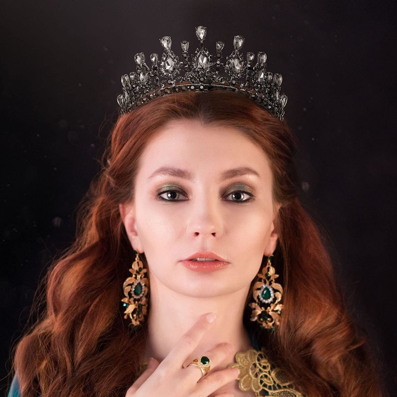 AW BRIDAL Black Baroque Tiara and Crown for Women Wedding Crown for Bride Gothic Queen Crown Princess Tiara for Wedding Birthday Halloween (Black)