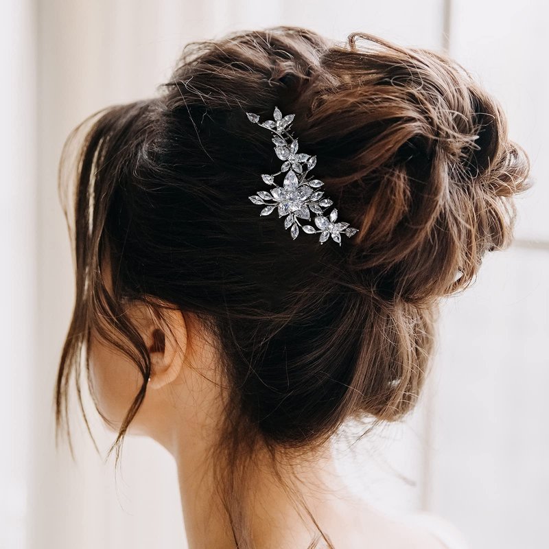 - Wearing: Wear in the center of the hair above a hair, or nestle in the side of an updo for an elegant bridal look.