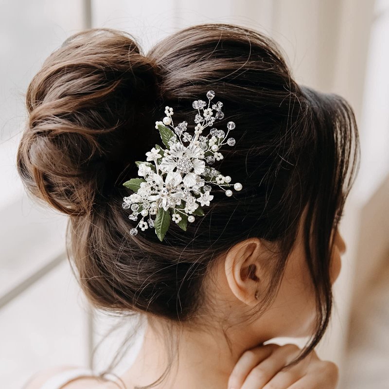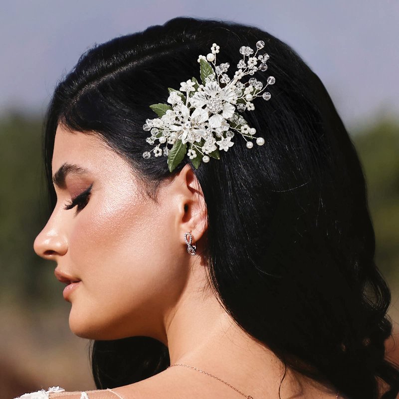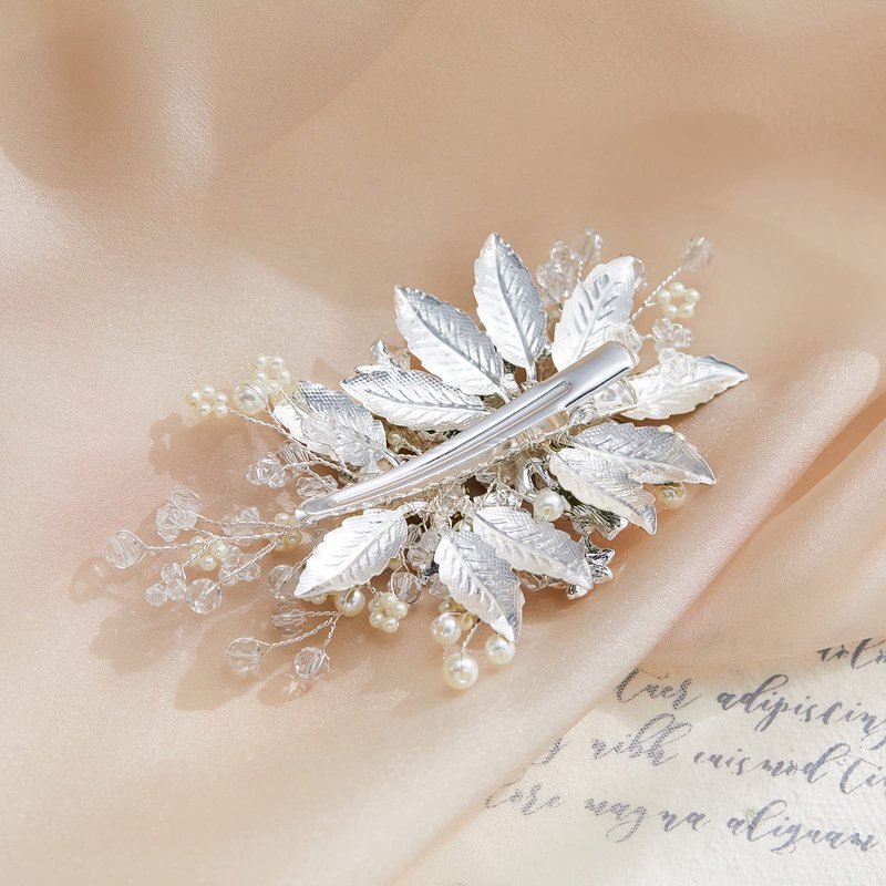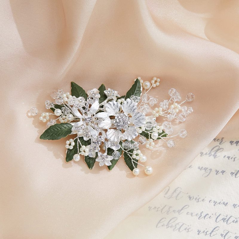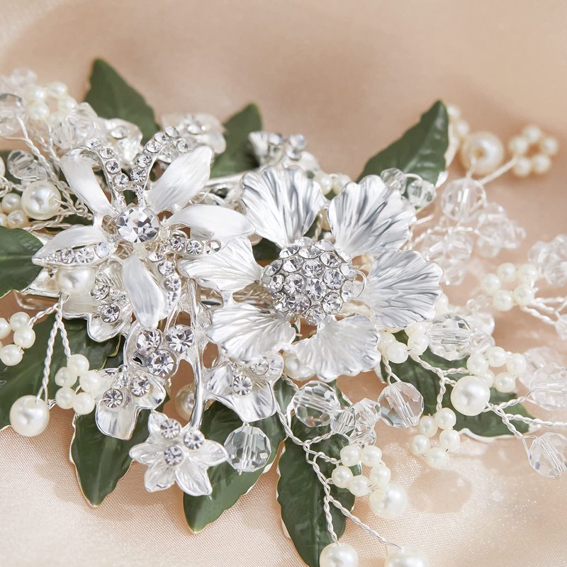 • 🌼 Material: The bridal hair clip is made of alloy flower, leaves, pearls and rhinestones. Delicate and elegant. 100% handmade and meticulously crafted.