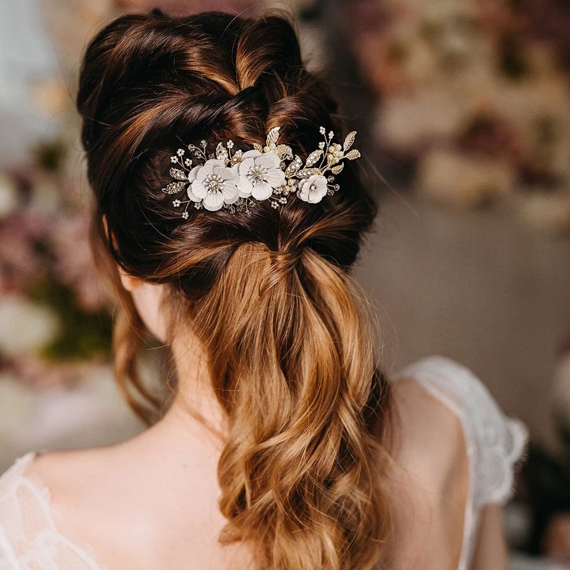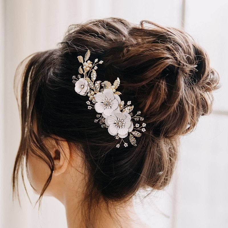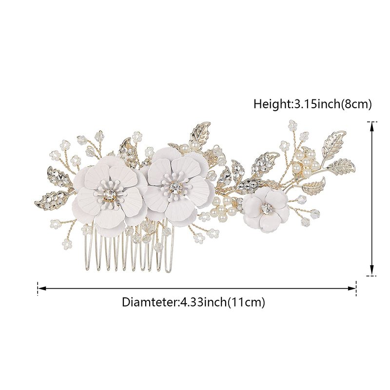 - 🌹Material:bridal hair comb features ceramic flower as the focal point, encrusted with lots of leaves, small rhinestones flower, quality pearl and crystal beads.100% handmade and meticulously crafted.
