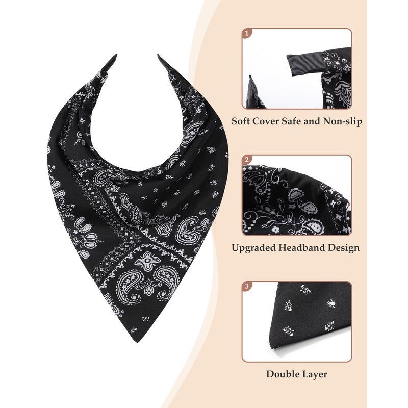 - TWO PURPOSE HAIR BANDANAS FOR WOMEN: These hair scarf headbands are a combination of a head bandana and a hairband. You can use it as a triangle head scarf or roll up its ends into a headband and wear it as a hairband