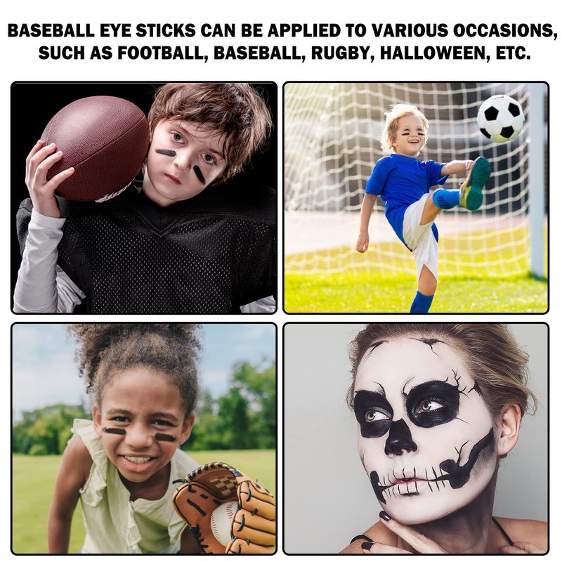- 【Long Lasting Moisture】Eye black softball adopts high quality and safe formula, which has a long lasting makeup effect and is hard to take off makeup. It has good air permeability and extensibility, and it is safe to paint on the faces of children and babies.