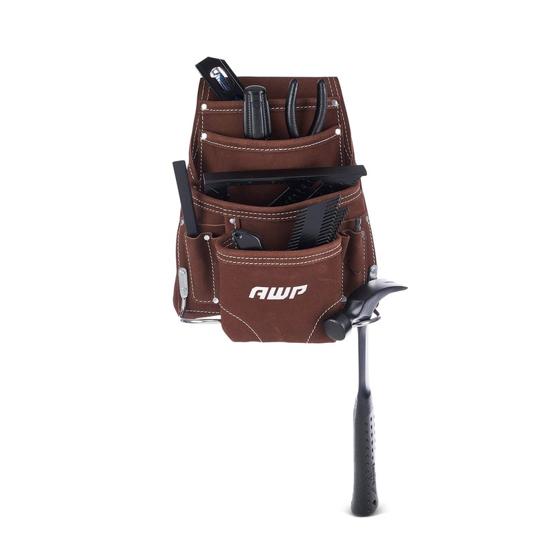 - AWP 10-pocket carpenter tool pouch is made from durable suede leather and designed for easy vertical tool organization and access