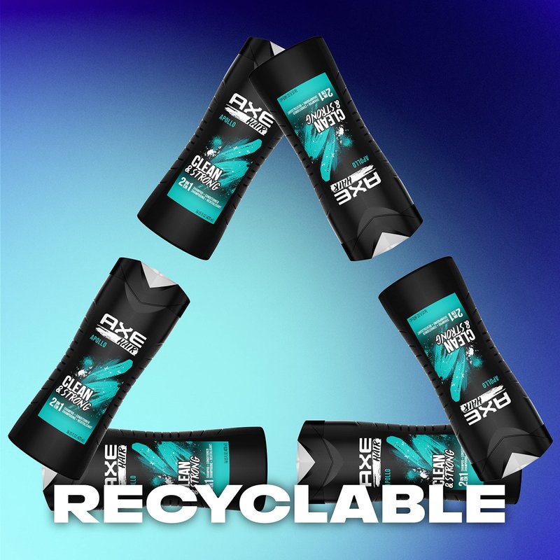 - Axe Apollo 2 in1 shampoo and conditioner is good for the gym, dorm, and on-the-go