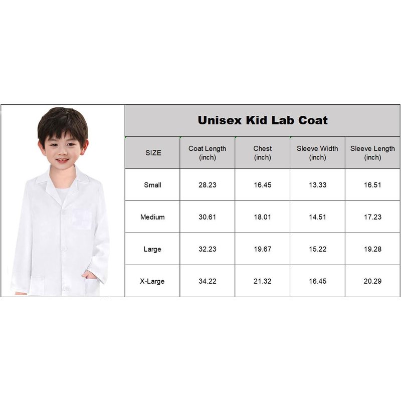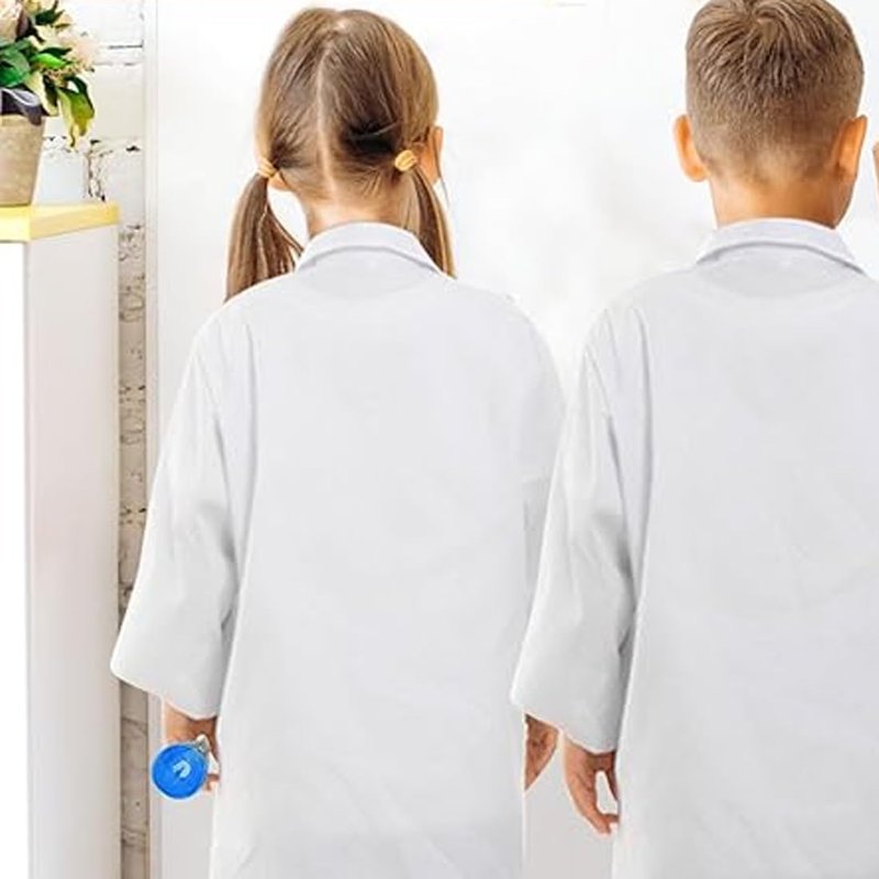 - 3 Pockets for Convenience - White Kid's Lab Coat has 2 side pockets and 1 chest pocket. It can be used to store stethoscope, pens, business cards, gloves, lab props, etc., making it more convenient for you to do experiments or other things. Ideal Gift For Kids 3-12 Years Old.