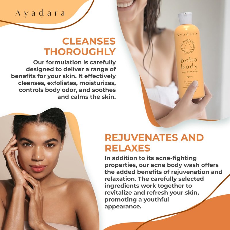 AYADARA Boho Body Acne Body Wash, 8oz, Back Acne Treatment Body Wash, Acne Body Wash With Hydrating Aloe Vera, Body Acne Wash that Hydrates Skin, Body Wash for Sensitive Skin Men and Women, 50+ Uses