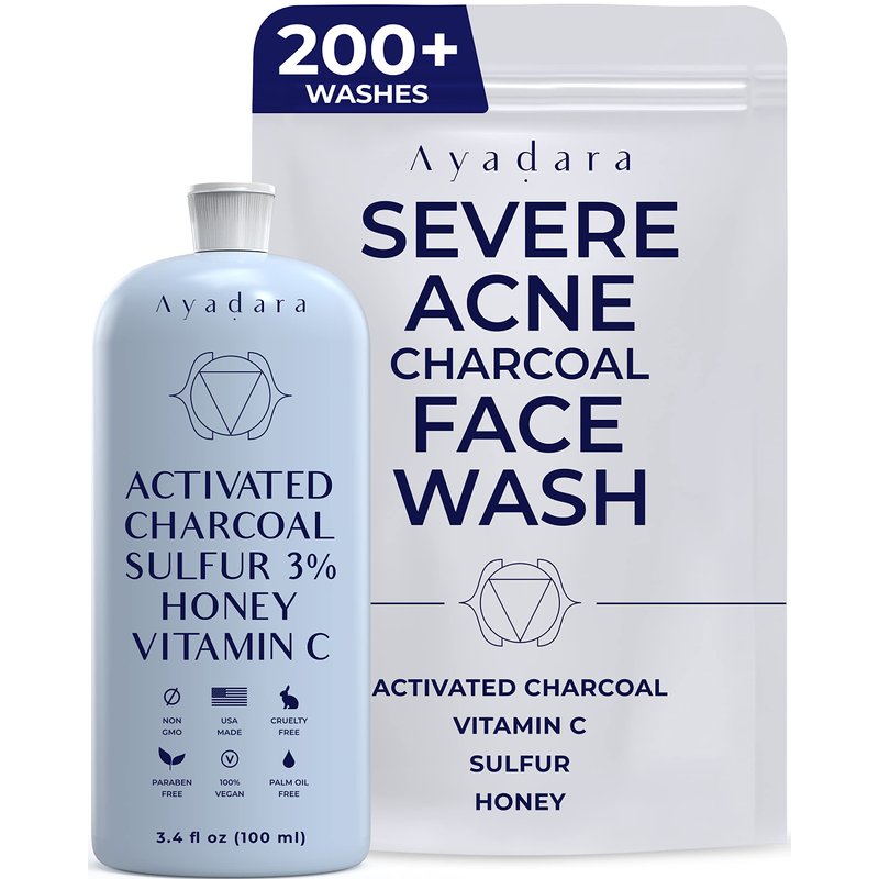 AYADARA Severe Acne Charcoal Face Wash, 3.4 oz, Daily Face Wash with Sulfur and Honey, Charcoal Face Cleanser, Mens Face Wash for Acne, Deep Cleansing Charcoal Face Wash for Women and Men, 200 Uses
