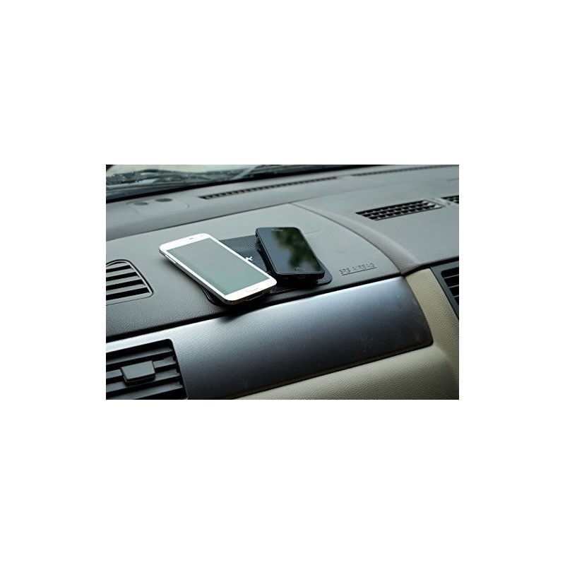 - MULTI-USE ELECTRONICS MAT AND DASH PAD: Sticky pads for car dashboard, boats, golf carts, office and kitchen- keep coins, GPS, cell phone, radar detector or transponder/iPass on non slip pad car dashboard mat. Rubber non slip pads and sticky mats can be used in the center console windshield. The rubber grip pad will stop iPads from sliding. The non slip dashboard pad can be used while surface charging your phone. Press and hold for 10 seconds and the phone sticky pad works!