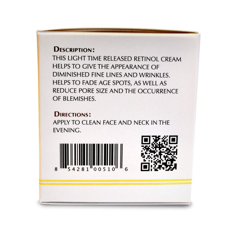 This time released Retinol Cream helps to diminish pore size, appearance of fine lines and even skin tone. Excellent for mature skin that has a tendency towards hormonal breakouts. Recommended as a night cream only. No parabens. No artificial colors.