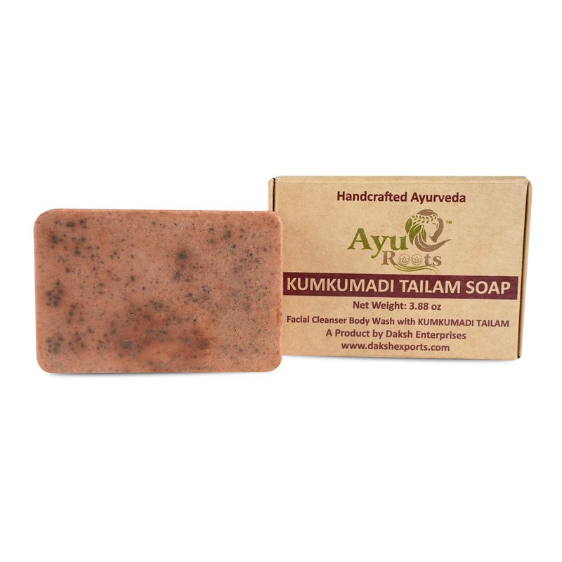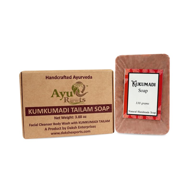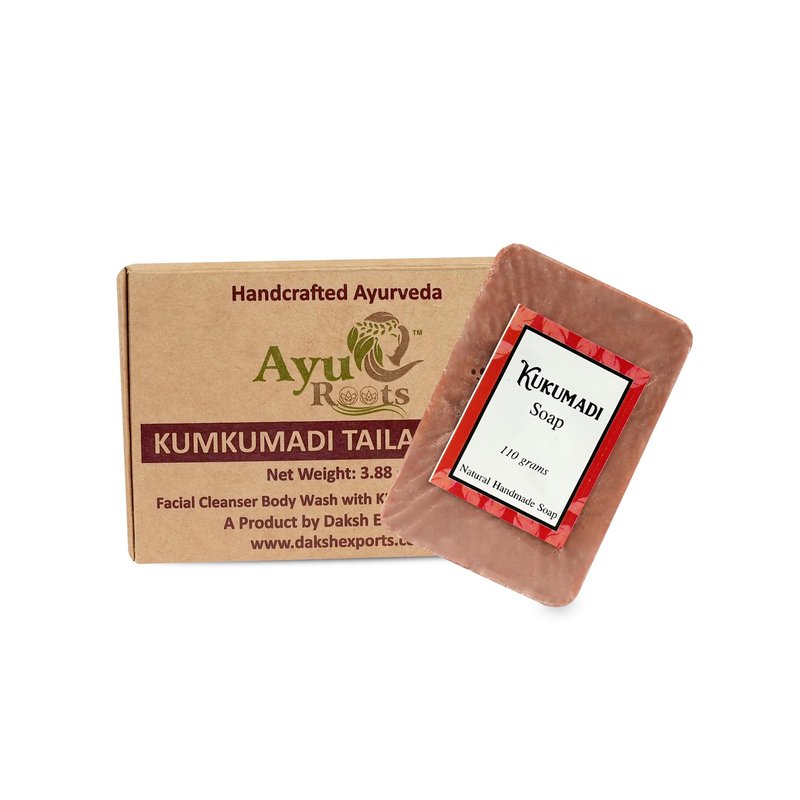 The AyuRoots Ayurvedic Kumkumadi Tailam Fusion Soap Bar will enhance your skincare regimen. This 3.88-oz vegan soap is a masterwork of handcrafted, traditional Indian handicraft, suitable for both face and body use. With the nourishing qualities of Kumkumadi Tailam infused into it, this soap provides an opulent bathing experience unmatched.
