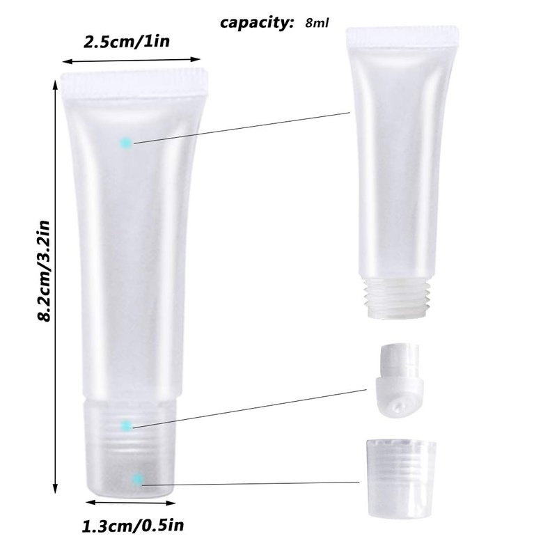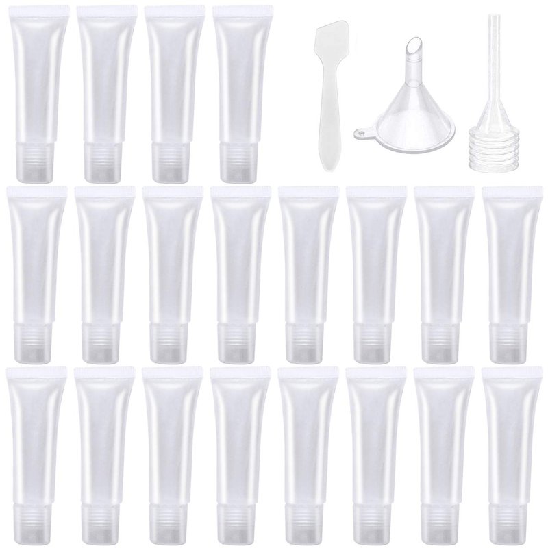 - Packing: 20 pieces of 8ml squeeze tube with transparent lid, plastic funnel x 1, pipette x 1, scraper x 1. For travel DIY projects, DIY lip balm cosmetics. The quantity is moderate to meet your different needs and can also be shared with your friends.