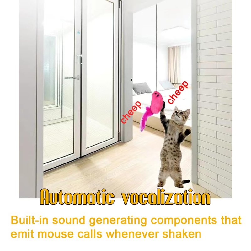 The cat toys interactive combine elastic string and rattle mouse, create an irresistible lure for cat and kitten, help stimulate cat's natural hunting instincts to chase, pounce and jump. Good way to release energy and keep daily exercise.