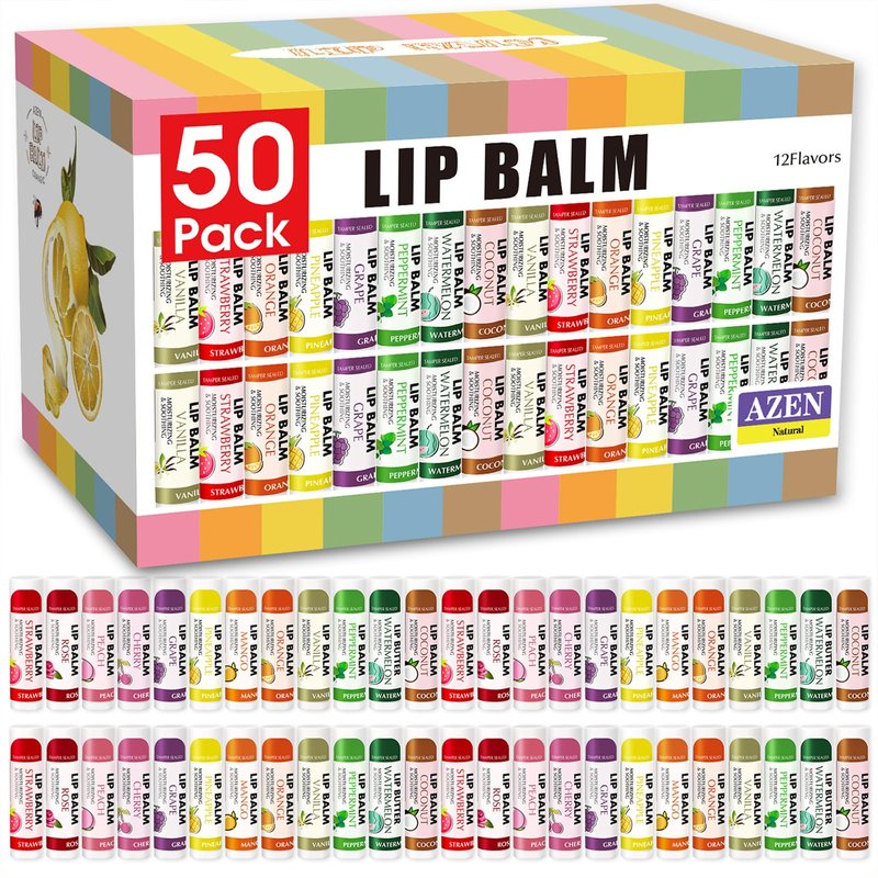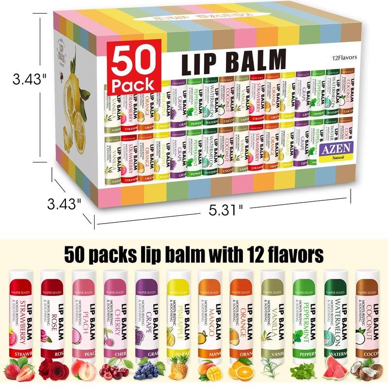 AZEN 50 Pack Lip Balm, Natural Lip Balm Bulk, Lip Care Product, Moisturizing Lip Balm for dry cracked lips