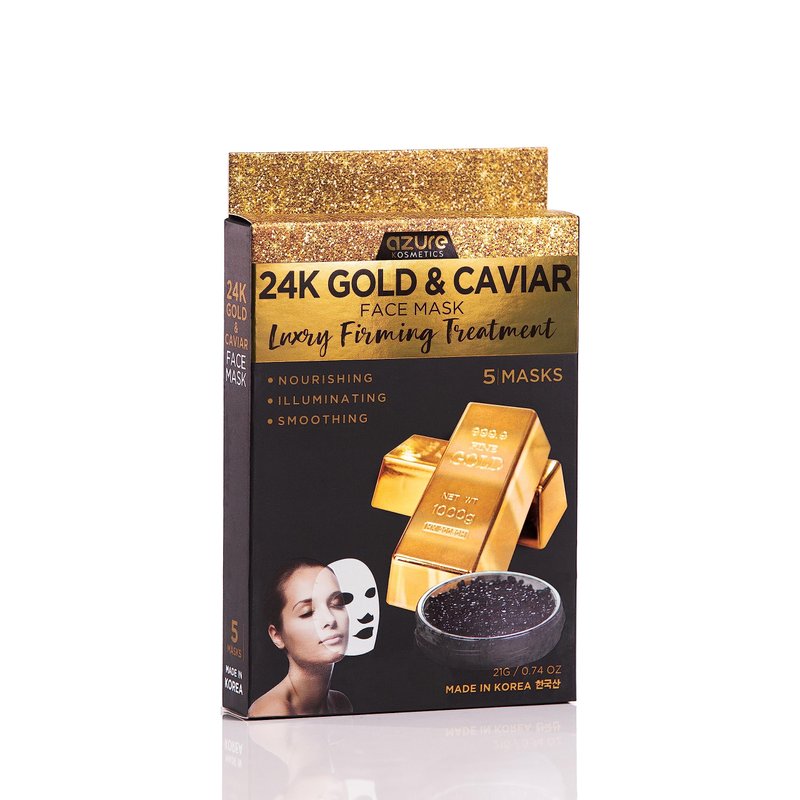 AZURE 24K Gold and Caviar Anti Aging Luxury Face Mask - Hydrating & Firming Facial Mask - Helps Reduce Wrinkles & Fine Lines - With Hyaluronic Acid & Collagen - Skin Care Made in Korea - 5 Pack