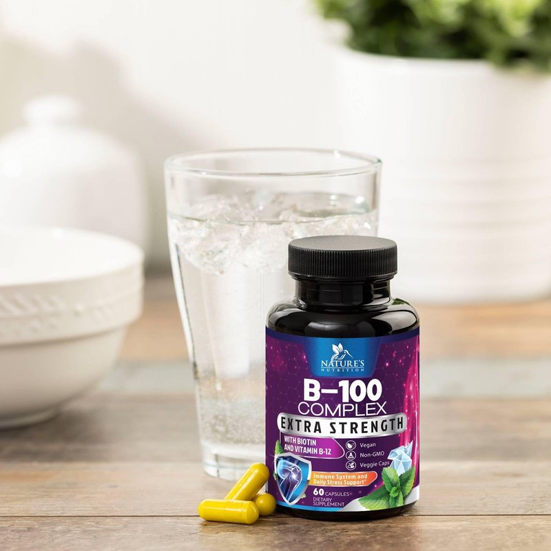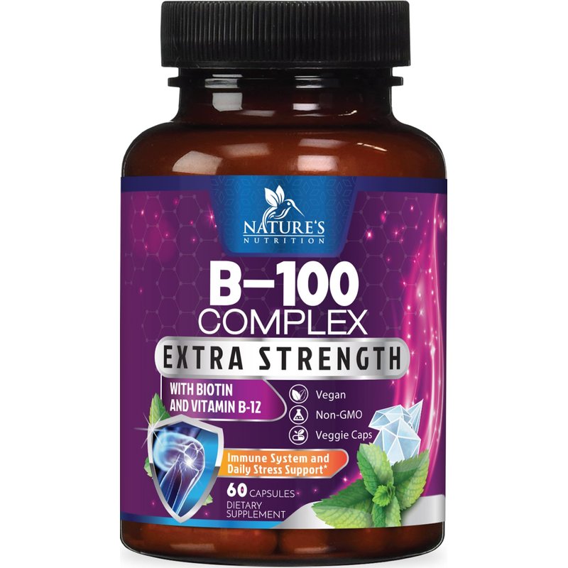 - Vitamin B Complex Capsules by Nature's Nutrition: B Complex Vitamins for women and men, b 100 multi supplement with b12, b6, b1, b3 plus more high basic potency b-complex vitaminb supplements made with vit c plus niacin released energy folate support bcomplex multivitamin nature natures best activated vitaminbcomplex encapsulations b-100 b100 folic acid 50 conplex active vitamina b 12 bitamin complejo vegan para mujer y hombres