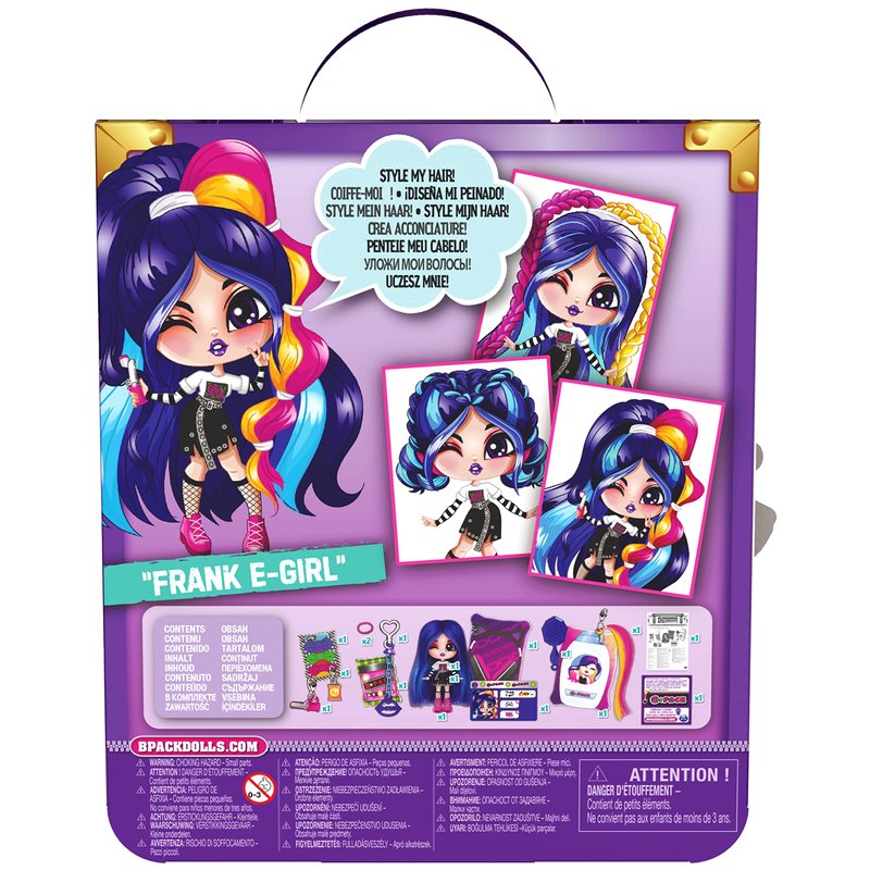 B Pack, Luscious Locks Frank E-Girl Collectible Doll with Removable Hair Extension and Doll Accessories, 3.5-inch, Kids Toys for Girls Ages 5 and up