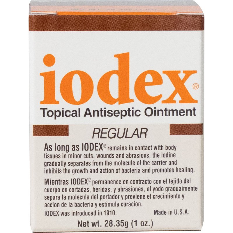 - IODEX OINTMENT - This is the ideal topical salve for treating minor cuts, wounds, and abrasions.