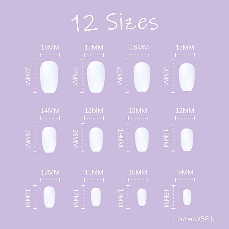 - VARIED SIZE - 24 pieces stick on nails in 12 different sizes, no matter what your nail size is, you can choose the most suitable false nail for yourself. It is easy to trim and file them to in any length and shape you like