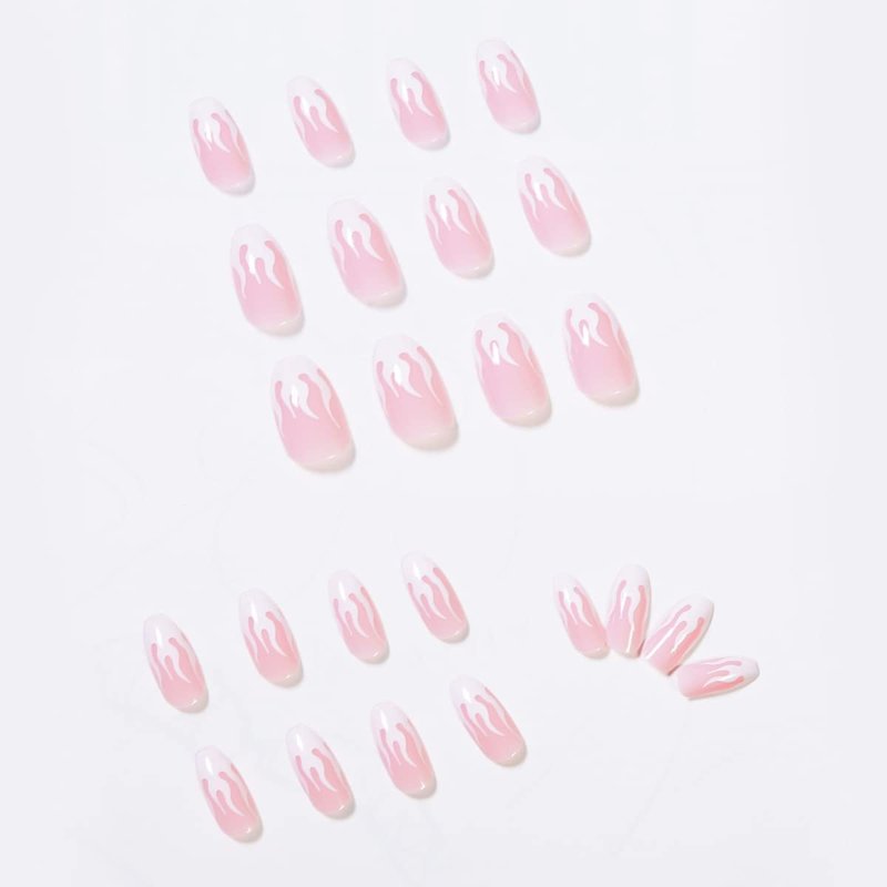 - UNIQUE DESIGN - Pink white flame design, medium coffin shape, combine trendy elements with classic color and shape, looks shiny and attractive