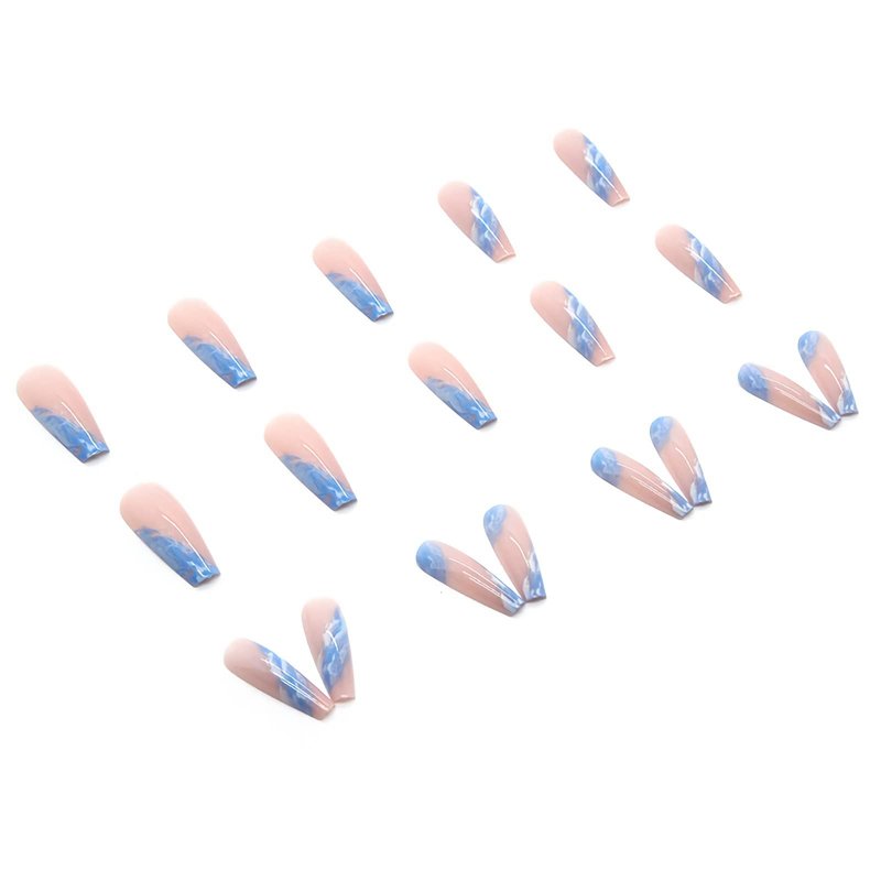 - 【☁Multiple Application】These blue fake nails designs can make you stand out at parties, dates, weddings, proms, and Christmas. It can be given as a gift to your wife, mother, girlfriend, daughter or friends. It will bring them a comfortable and convenient manicure art experience
